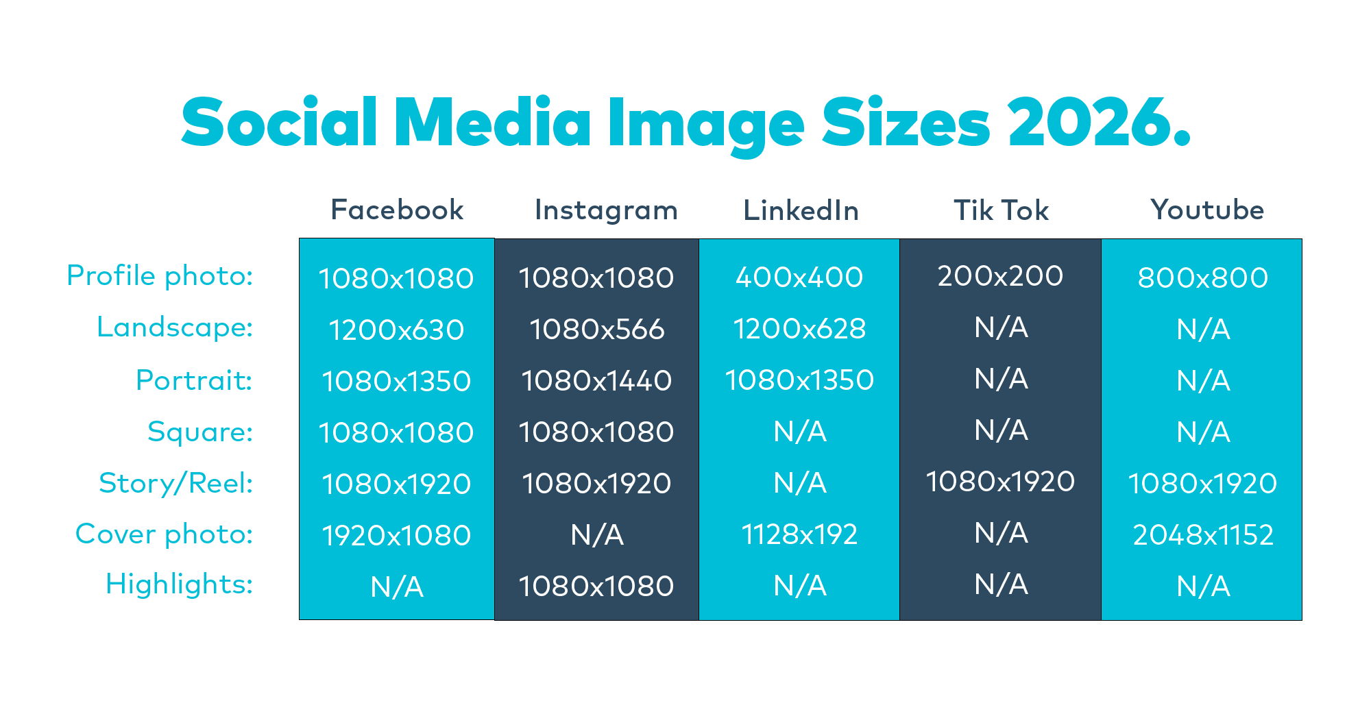 Kompletna specifikacija najčešćih vizuala za Facebook, Instagram, TikTok,LinkedIn i YouTube