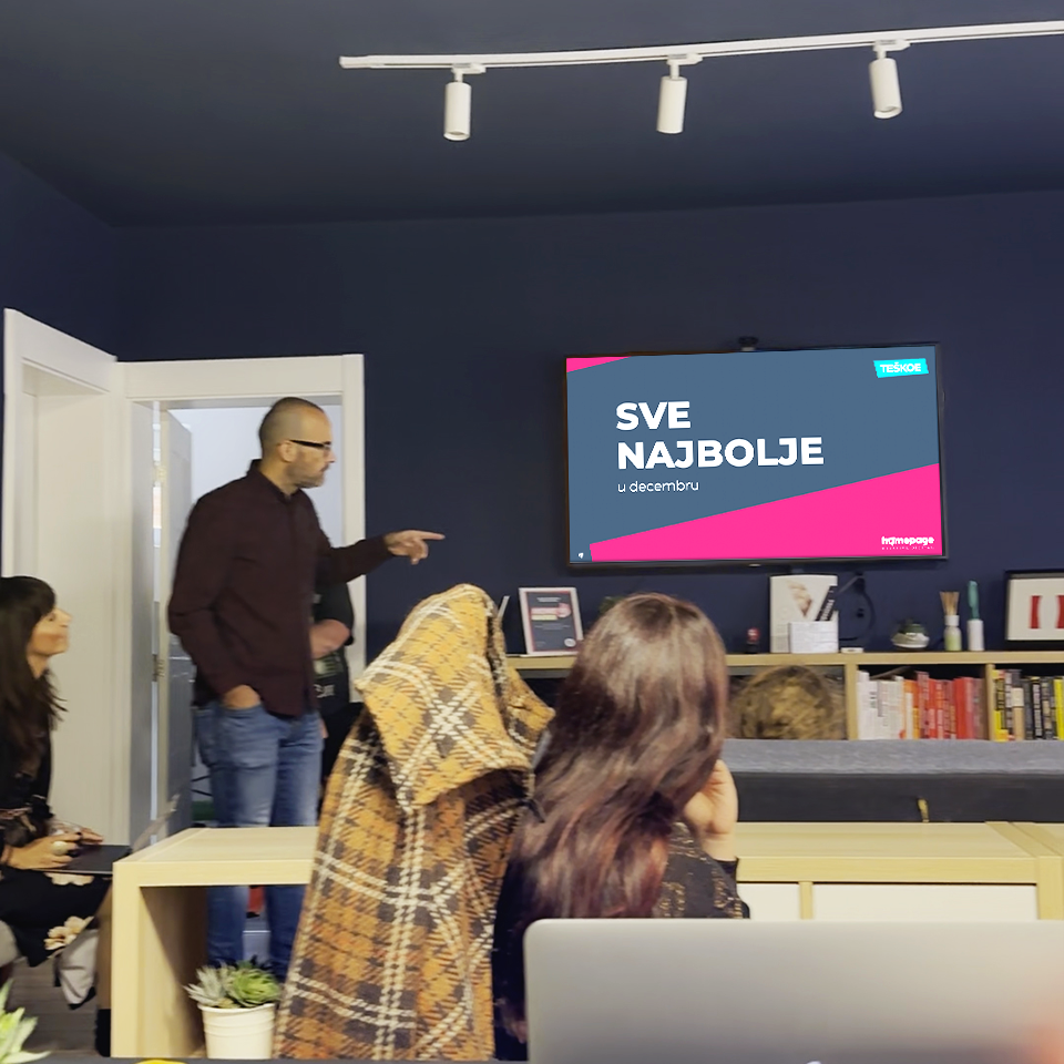Jednom mesečno organizujemo timski sastanak na kojem predstavljamo najbolje što smo uradili u prethodnom periodu. Svako priprema dva primera iz svog domena. Važno je da to budu radovi i situacije na koje smo lično ponosni, bez obzira na to da li su ih klijenti ili kolege posebno istakli.